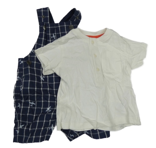 2set - Tmavomodro-biele kockované podšité na traké kraťasy s letadly + smotanové tričko s gombíkmi a vreckom M&S