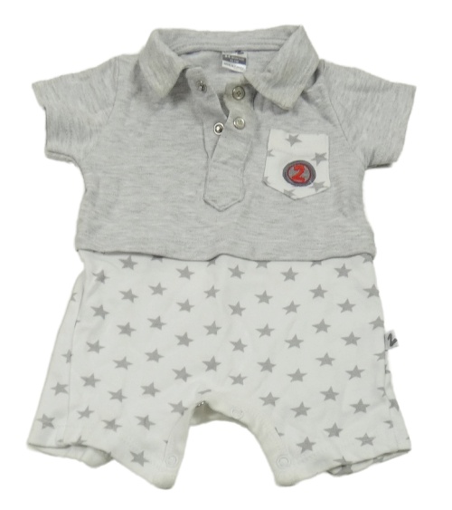 Svetlošedá -biely kraťasový overal s hviezdičkami a vreckom s číslom a golierikom