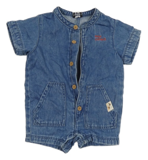 Modrý rifľový kraťasový overal s vreckami