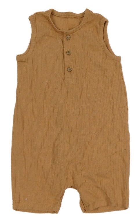 Hnedý rebrovaný bavlnený kraťasový overal s gombíkmi George