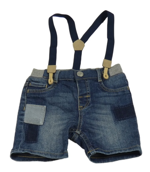 Tmavomodré rifľové kraťasy s trakami a záplatami H&M