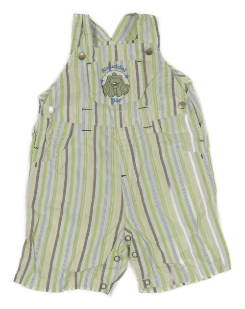 Mintovo-bielo-hnedé pruhované plátenné na traké kraťasy s medvedíkom