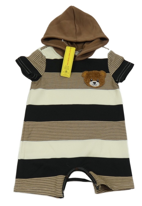 Nové - Hnedo-čierno-krémový pruhovaný kraťasový overal s medvěďom a kapucňou Shein