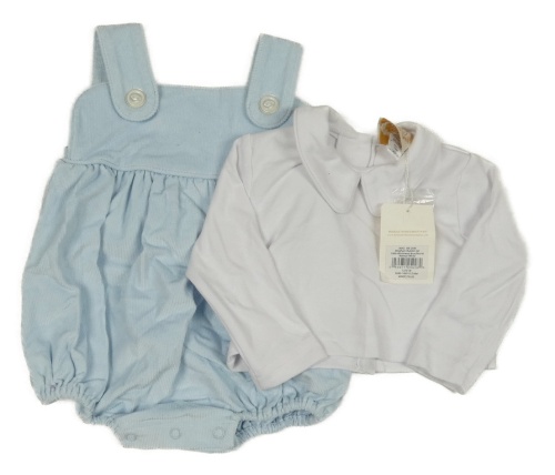 Nové - 2set - Svetlomodré menšestrové na traké kraťasy + biele tričko s golierikom