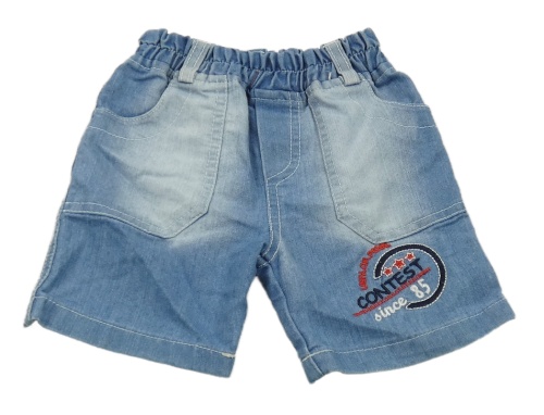 Svetlomodré teplákové rifľové kraťasy s nápismi a číslom