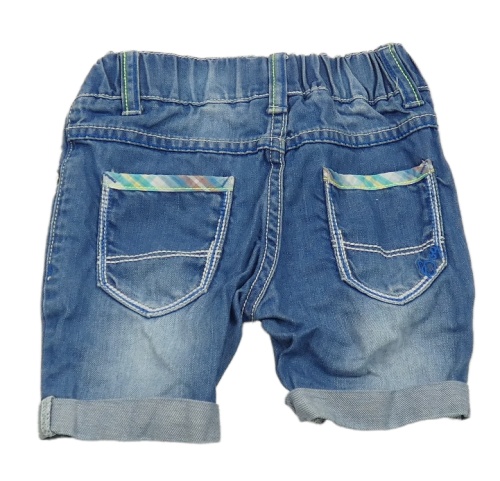 Modré rifľové kraťasy s nápismi a vyšúchaním