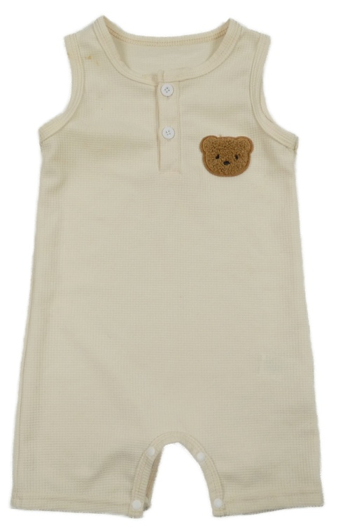 Vanilkový rebrovaný kraťasový overal s medvedíkom