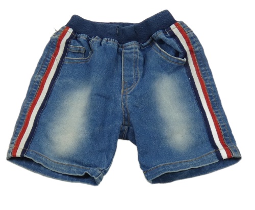 Modré teplákové rifľové kraťasy s pruhmi a úpletovým pasom