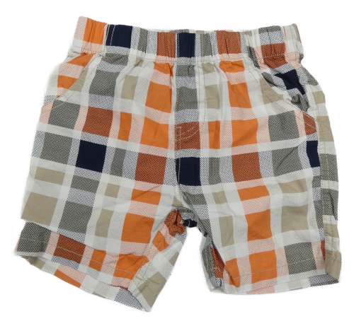 Béžovo-oranžovo-tmavomodré kockované plátenné kraťasy Topolino