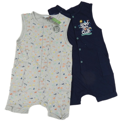 Nové - 2x - Cargo kraťasový overal - Bílý s obrázky, tmavomodrý s nápismi Smile