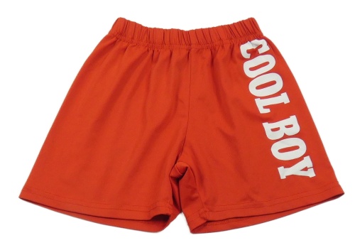 Červené športové kraťasy s bielým nápisom