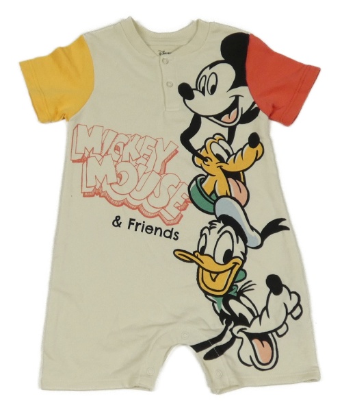 Smetanovo-červeno-oranžový teplákový kraťasový overal s Mickey s kamarády PRIMARK
