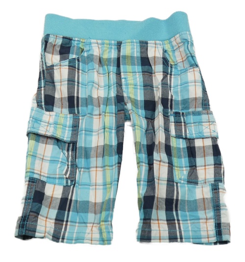Azurovo-bielo-tmavomodré kockované plátenné cargo kraťasy s úpletovým pasom Topolino