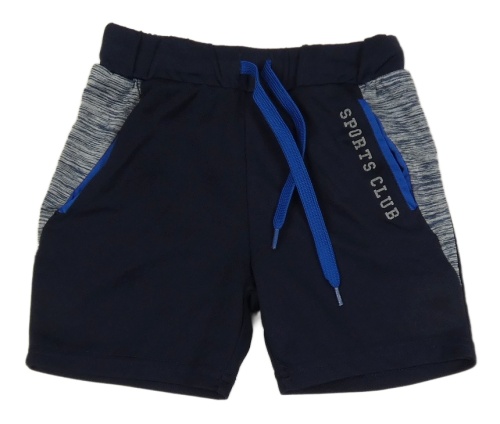 Tmavomodro-melírované športové kraťasy s nápisom Topolino
