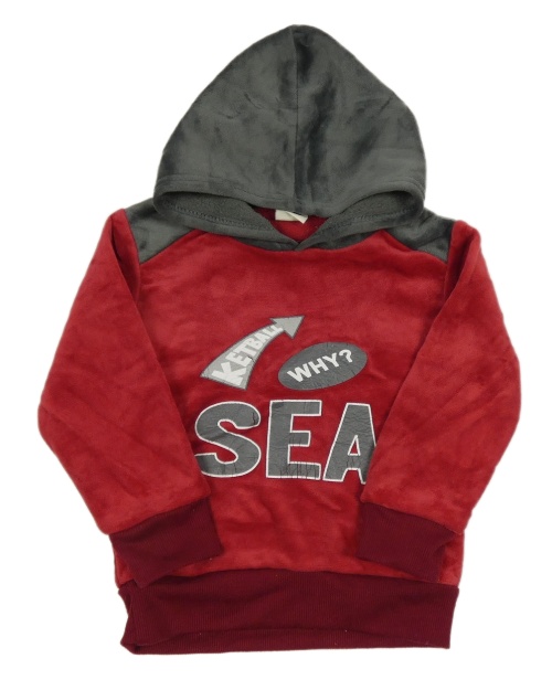 Červeno-sivá zamatová mikina s nápisom a kapucňou