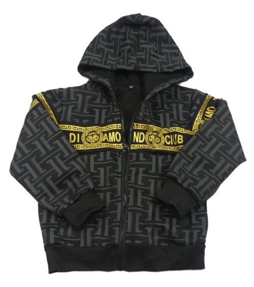 Čierno-sivo-zlatá vzorovaná prepínaci mikina s kapucňou