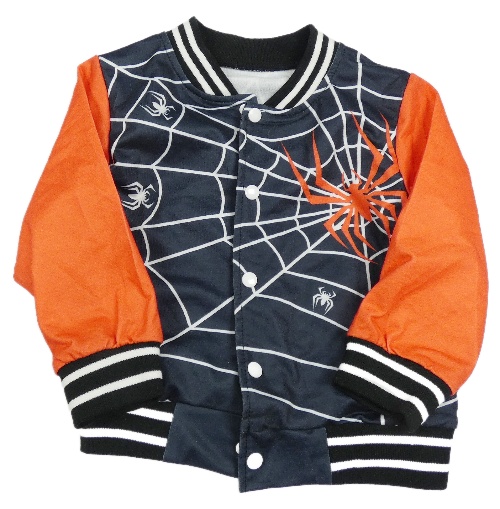 Tmavomodro-červená baseballová mikina s pavučinou a pavoučky a pruhmi