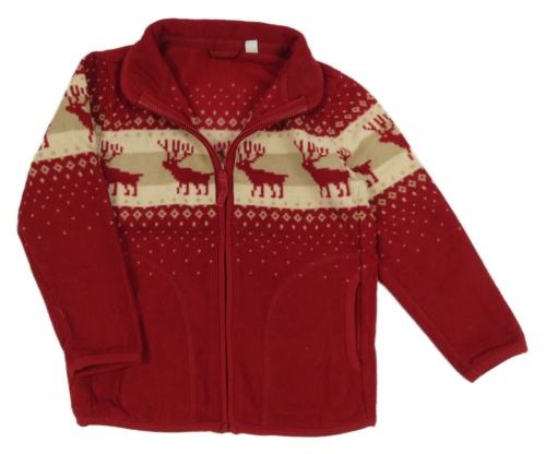Červeno-béžová fleecová prepínaci mikina so soby Uniqlo