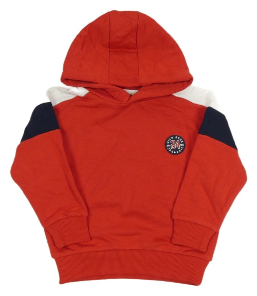 Červeno-bielo-tmavomodrá mikina s nášivkou a kapucňou C&A