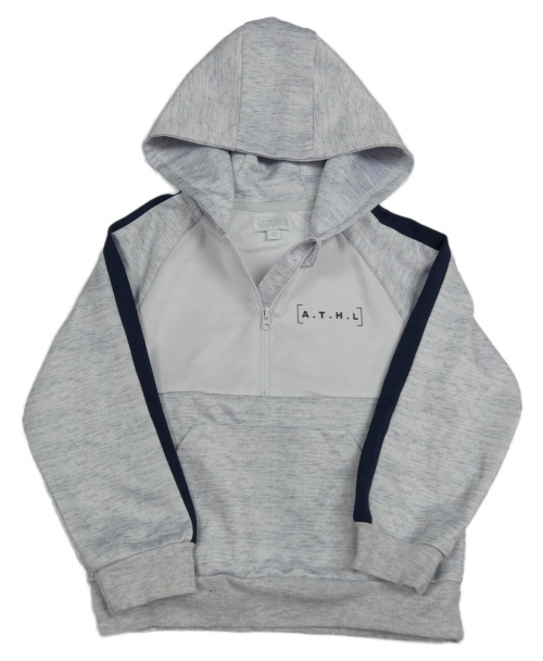 Sivo-biela športová prepínaci mikina s kapucňou s nápisom a kapucňou
