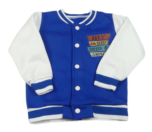Safírovo-biela baseballová tepláková mikina s nápismi