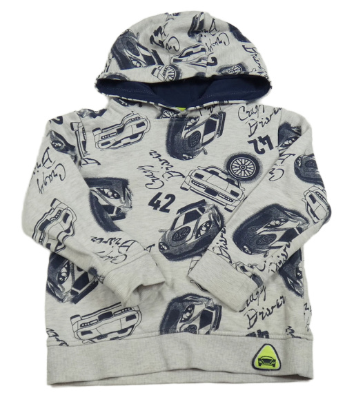 Sivo-tmavomodrá mikina s autami a kapucňou Kids