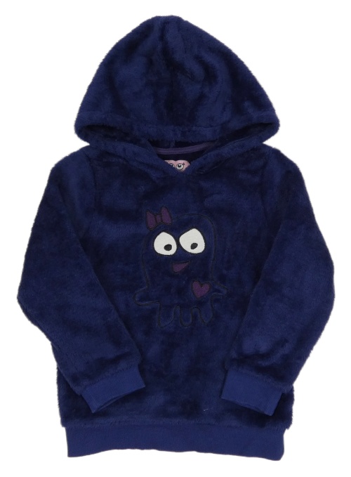Tmavomodrá chlpatá mikina s chobotnicí a kapucňou impidimpi