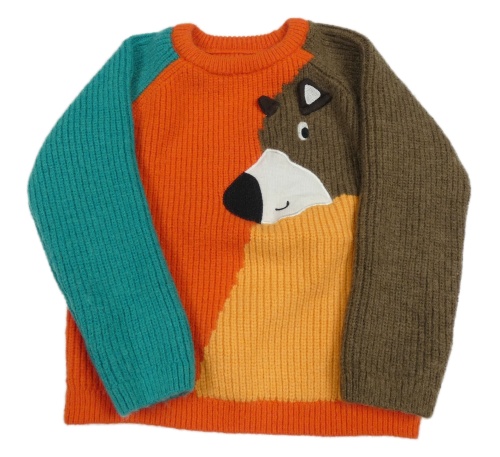 Červeno-oranžovo-modro-hnedý sveter s medvěďom Dunnes