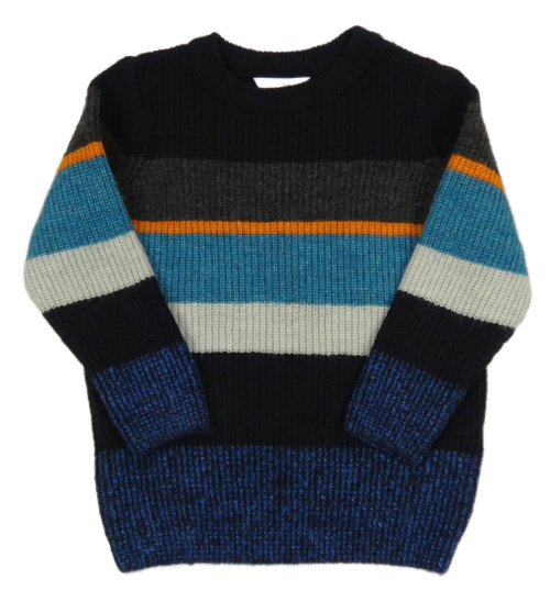 Tmavomodro-sivo-oranžový pruhovaný sveter M&S