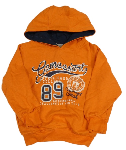 Tmavooranžová mikina s nápismi a číslom a kapucňou INFINITY KIDS