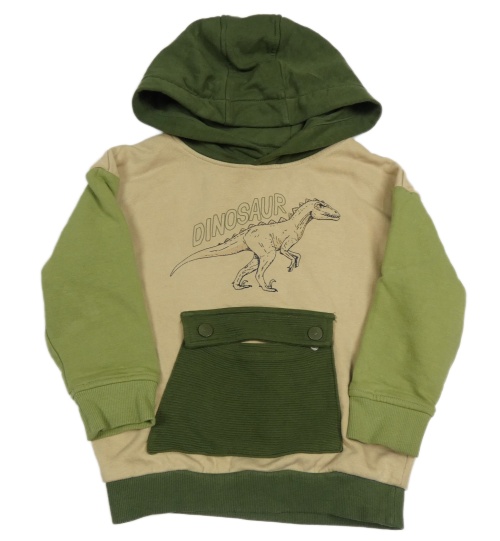 Béžovo-khaki mikina s dinosaurom a kapucňou