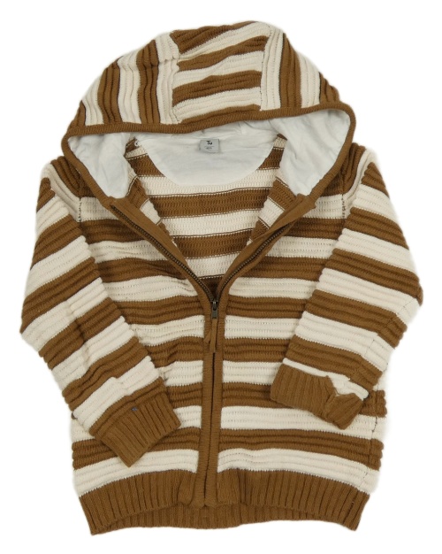 Hnedo-biely pruhovaný prepínaci sveter s kapucňou Tu