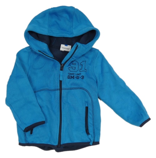 Modrá pletená podšitá prepínaci mikina s číslom a kapucňou Topolino