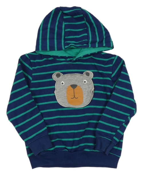 Tmavomodro-zelenomodrá pruhovaná mikina s medvedíkom a kapucňou lupilu