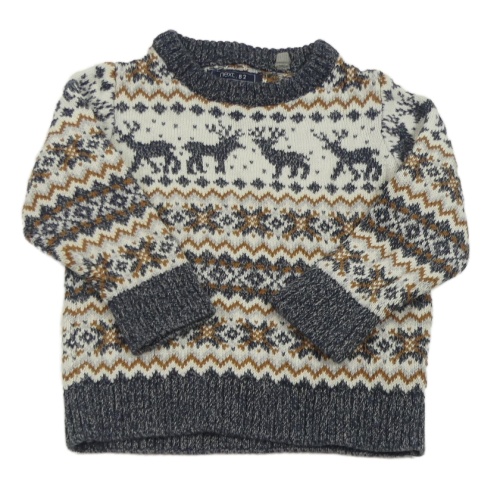 Smetanovo-sivo-hnedo-čierny vzorovaný sveter s jeleňmi Next