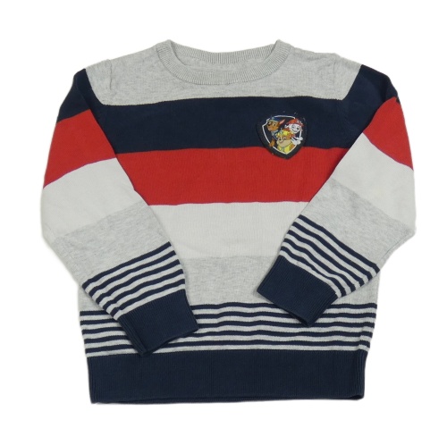Šedo-tmavomodro-červený pruhovaný svetr - Tlapková Patrola