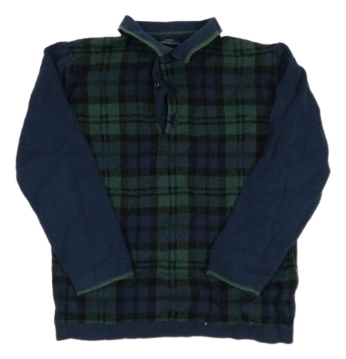 Tmavomodro-tmavozelený kockovaný sveter s golierikom Next