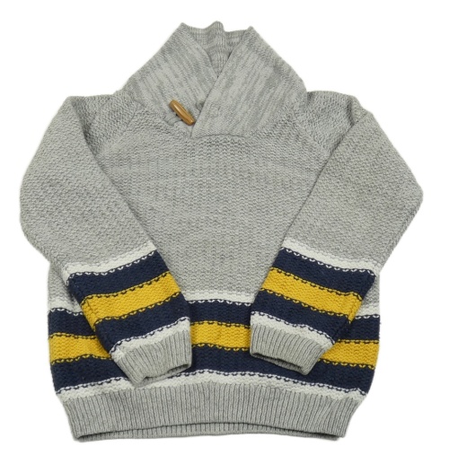 Sivo-tmavmomodro-okrový sveter s pruhmi a golierom Matalan