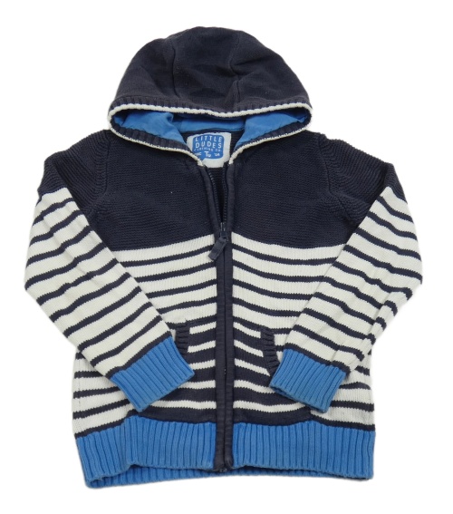 Tmavomodro-bielo-modrý pruhovaný prepínaci sveter s kapucňou Tu