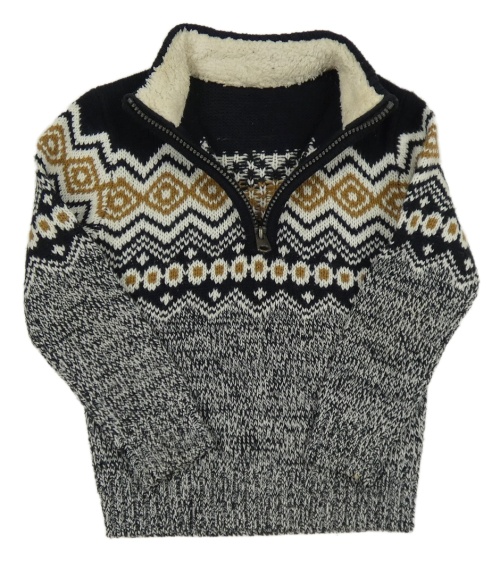 Čierno-bielo-hnedý melírovaný pletený sveter so vzorom St. Bernard