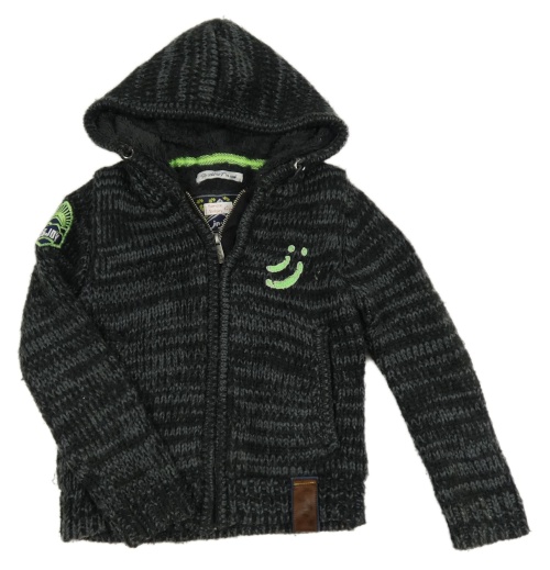 Čierno-sivý melírovaný zateplený prepínaci sveter s nášivkou a kapucňou
