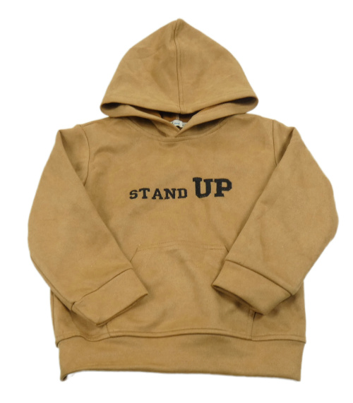 Hnedá semišová mikina s nápisom a vreckom a kapucňou CiviL