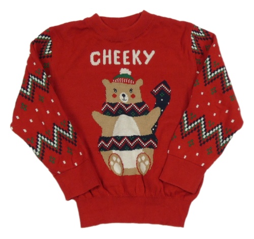 Červený sveter s medvedíkom a vzorom V BY VERY