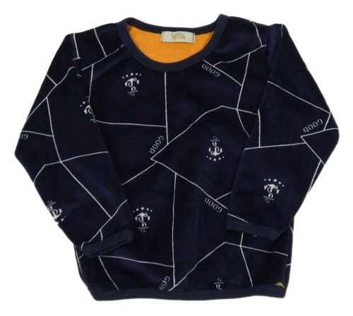 Tmavomodrá plyšová vzorovaná zateplená mikina s kotvami a nápismi