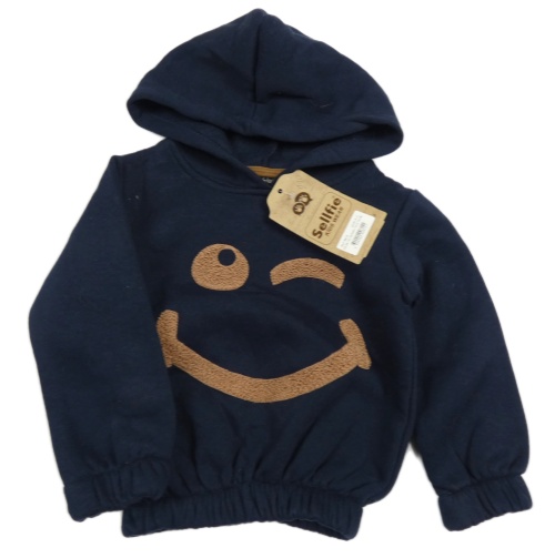 Nové - tmavomodrá tepláková mikina so smajlíkom a kapucňou