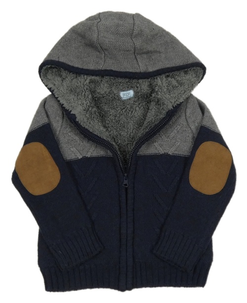 Sivo-tmavomodrý prepínaci vlnený zateplený sveter s kapucňou F&F