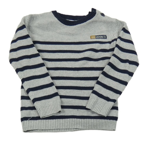 Sivo-tmavomodrý pruhovaný sveter s nášivkou