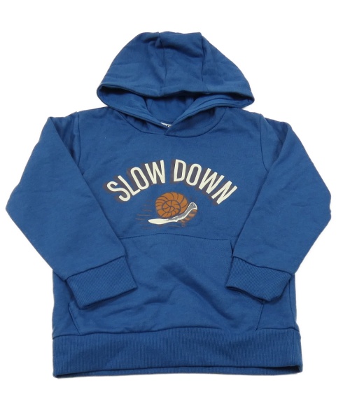 Tmavomodrá mikina s nápisem, slimákom a kapucňou