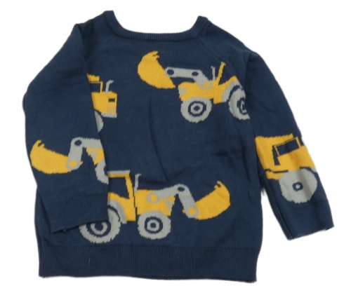 Tmavomodrý sveter so stavebními stroji F&F