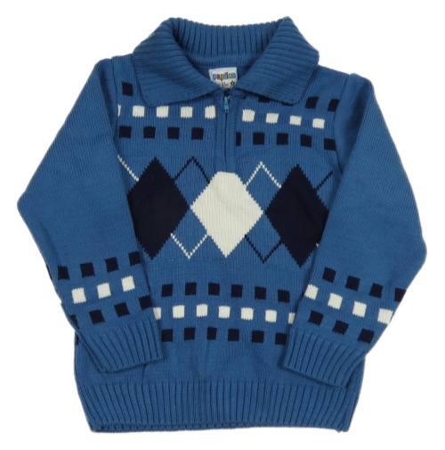 Modrý sveter so vzorom a golierikom